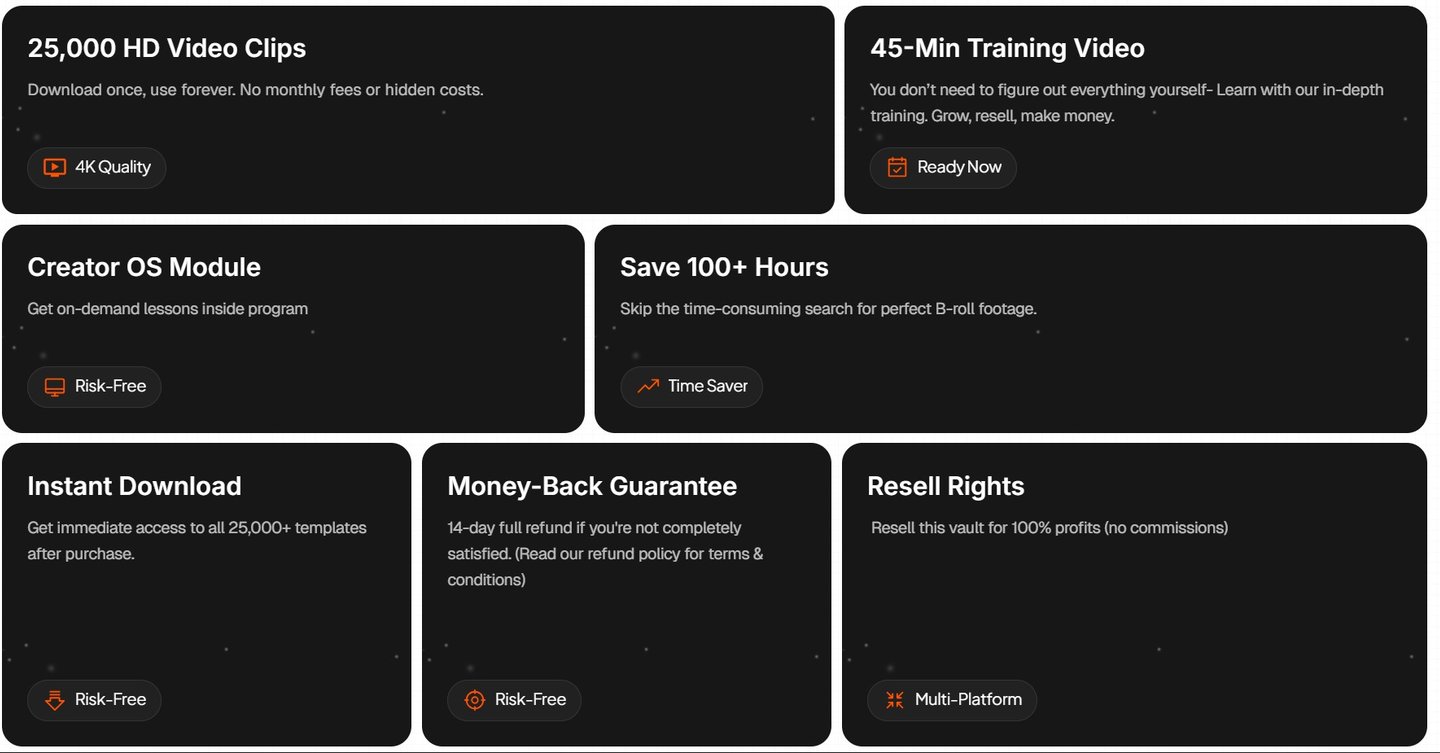Get instant access to 25,000+ viral video clips, step-by-step training, 24/7 AI support, and resell rights to build your own income machine.